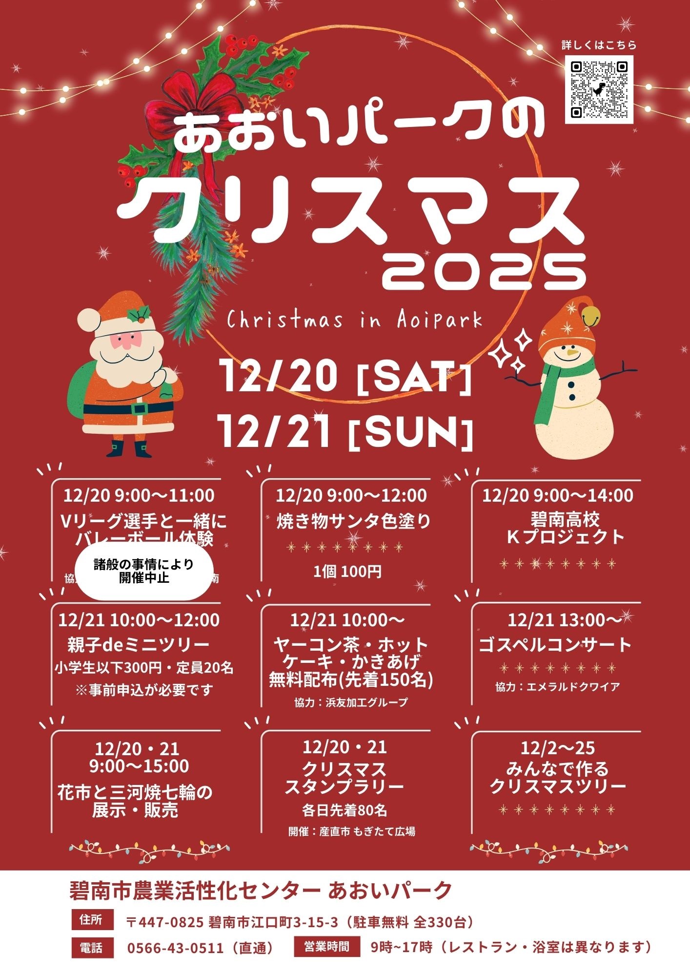 あおいパーク大型イベント第4弾「クリスマスイベント」を令和7年12月20日(土曜日)、12月21日(日曜日)の2日間で開催しました。