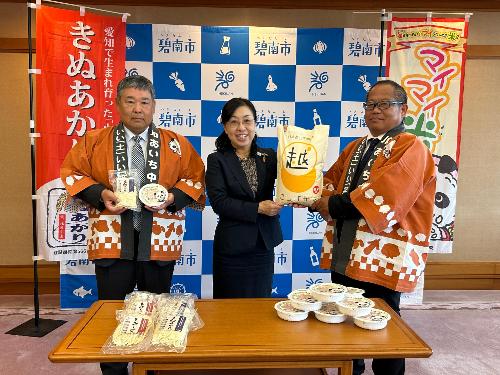 令和7年10月20日(月曜日)、JAあいち中央営農部会碧南支部の生産者と関係者の皆さんが、碧南市長を表敬訪問しました。