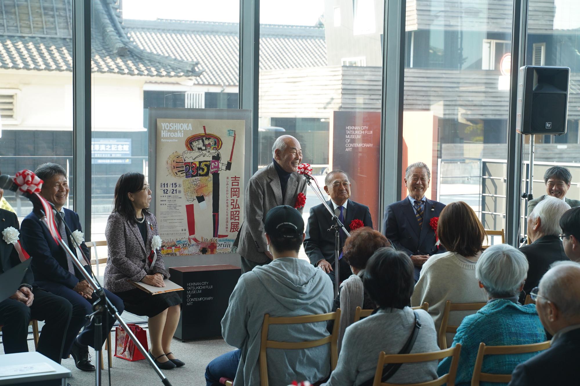 開会式で木本館長は、「描こうと思っても描けない、その世界に入り込もうと思っても入り込めない。そんな表現ができる唯一無二の吉岡先生の展覧会を藤井達吉現代美術館で開催できることを心からうれしく思っています。吉岡ワールドの魅力を皆さんにぜひ感じてほしいです!」とコメント。