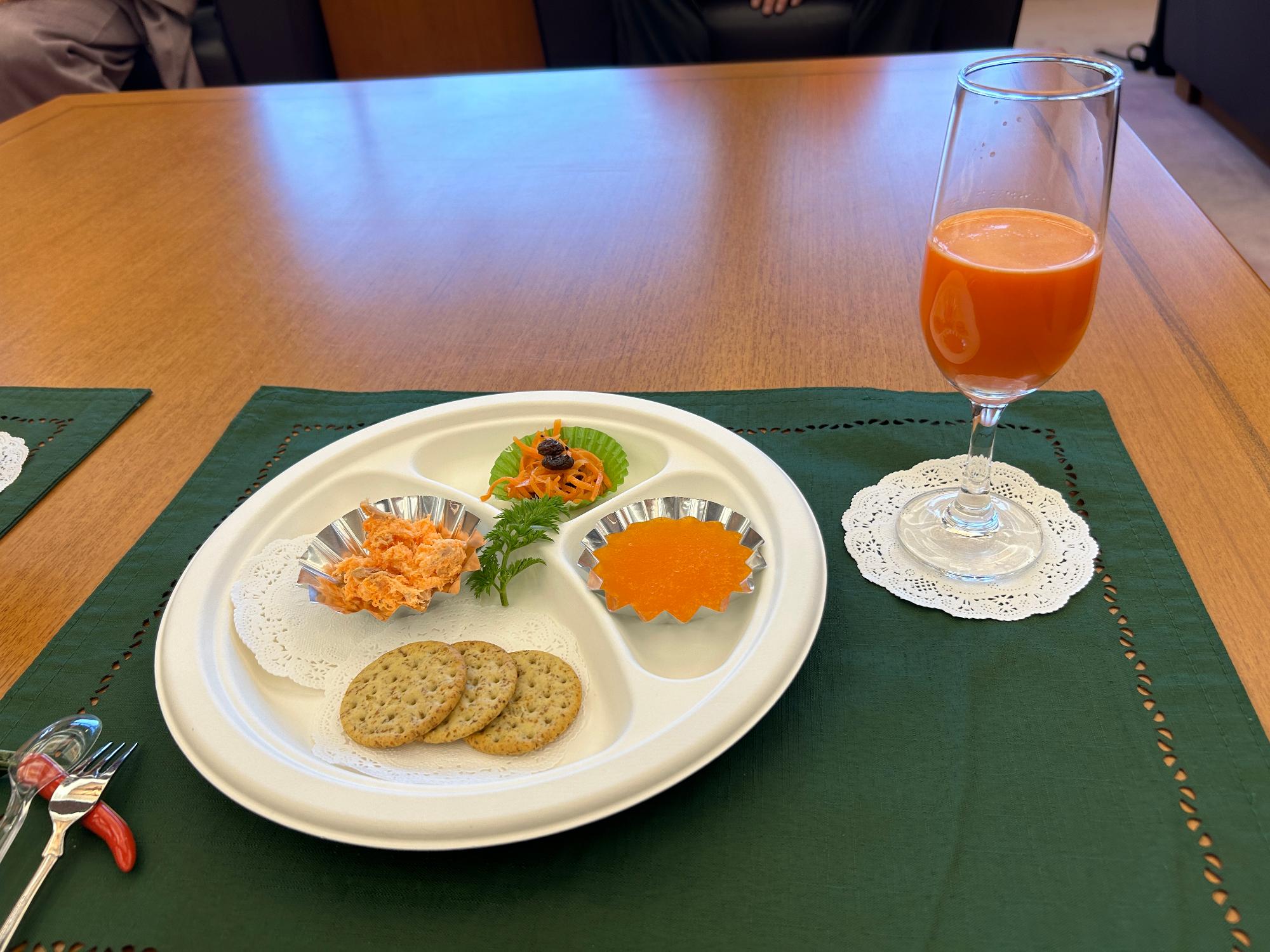 また、その場で絞った「へきなん美人ジュース」の試飲、にんじんゼリーや「美人の素サラダ(ジュースの搾りかすを使ったサラダ)」の試食もありました。