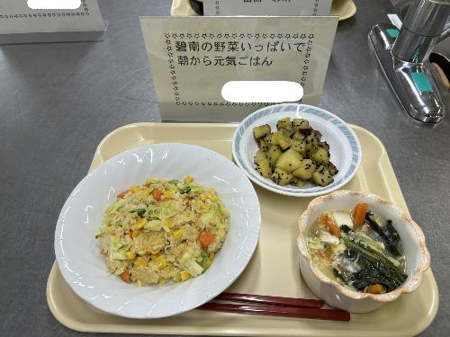 実際に朝ごはんを作った児童からは「朝から元気が出るように野菜をたくさん使いました。」、「碧南で採れる野菜や白醤油・白だしを使いました。」、「朝でも食べやすいように白しょうゆで味付けを考えました。」とそれぞれ工夫した点を話してくれました。