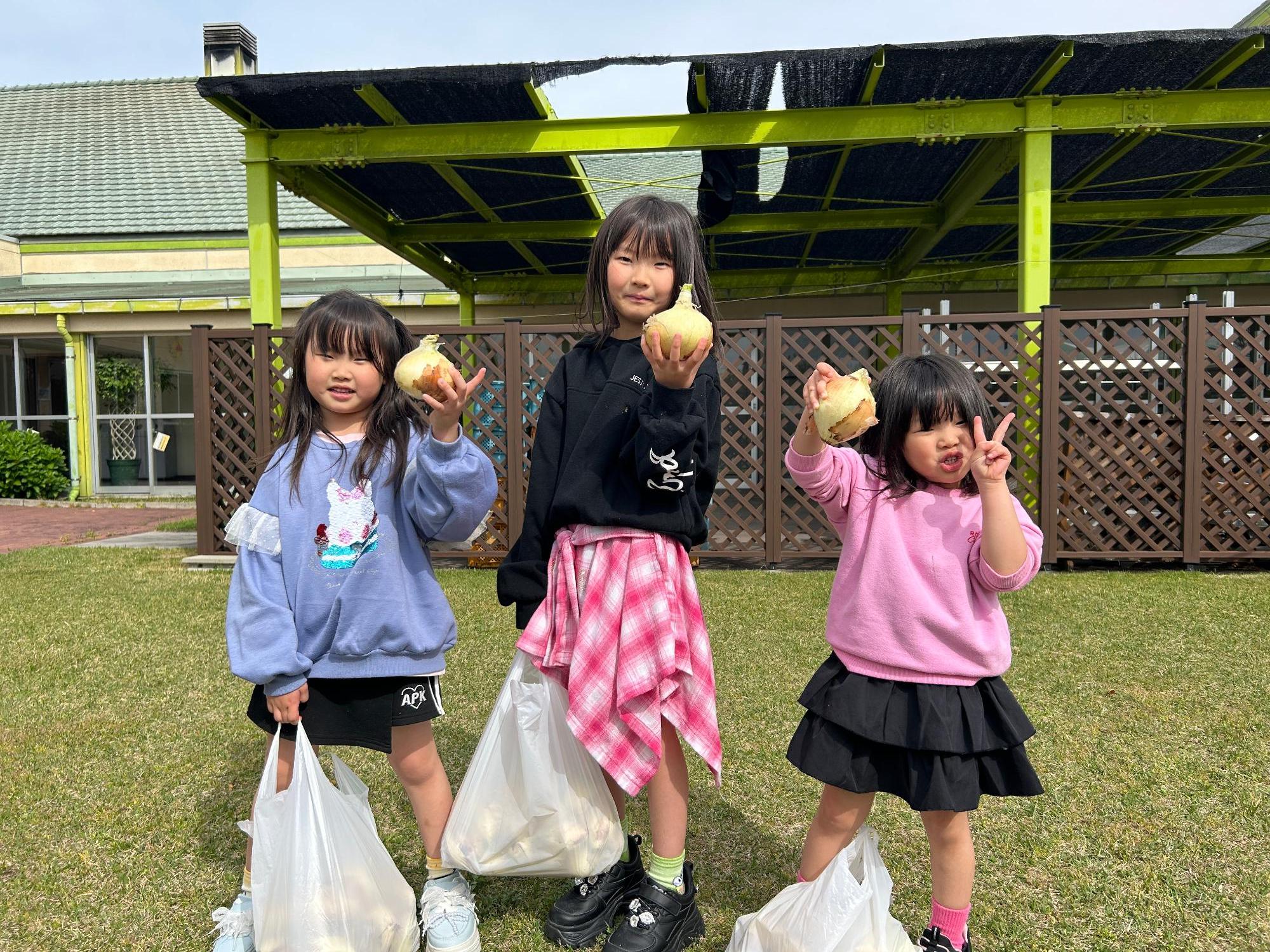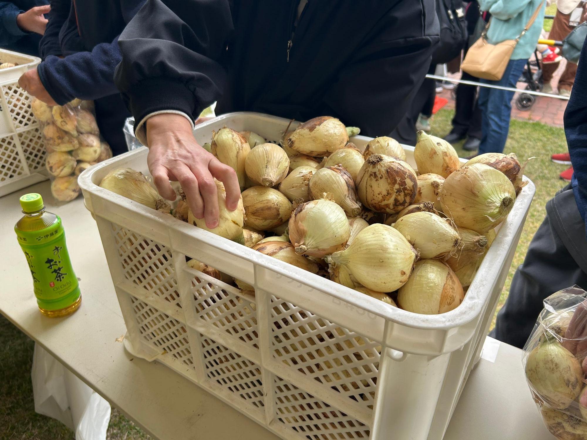 小さなお子さんが、自分の顔と同じくらいの大きな玉ねぎを大事そうに抱えている姿には、スタッフも思わず笑顔に…