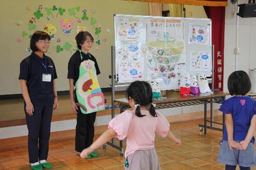 終了後、園児たちは「りきまるがかっこよくて好きだった。」「小腸の長さにびっくりした。」「食まるファイブの踊りが楽しかった。」と話してくれました。