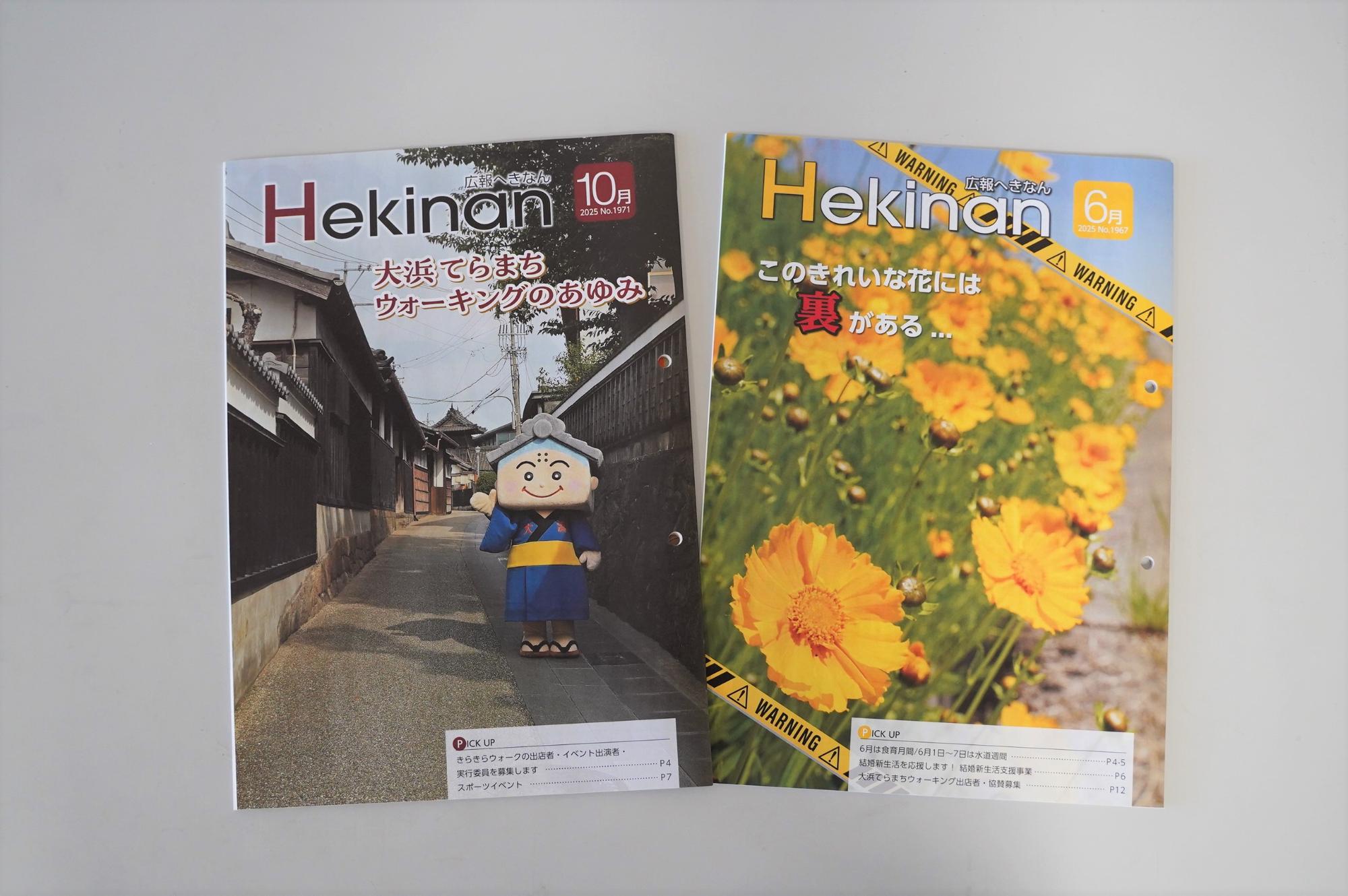 - 広報紙「広報へきなん」(毎月号)の裏表紙