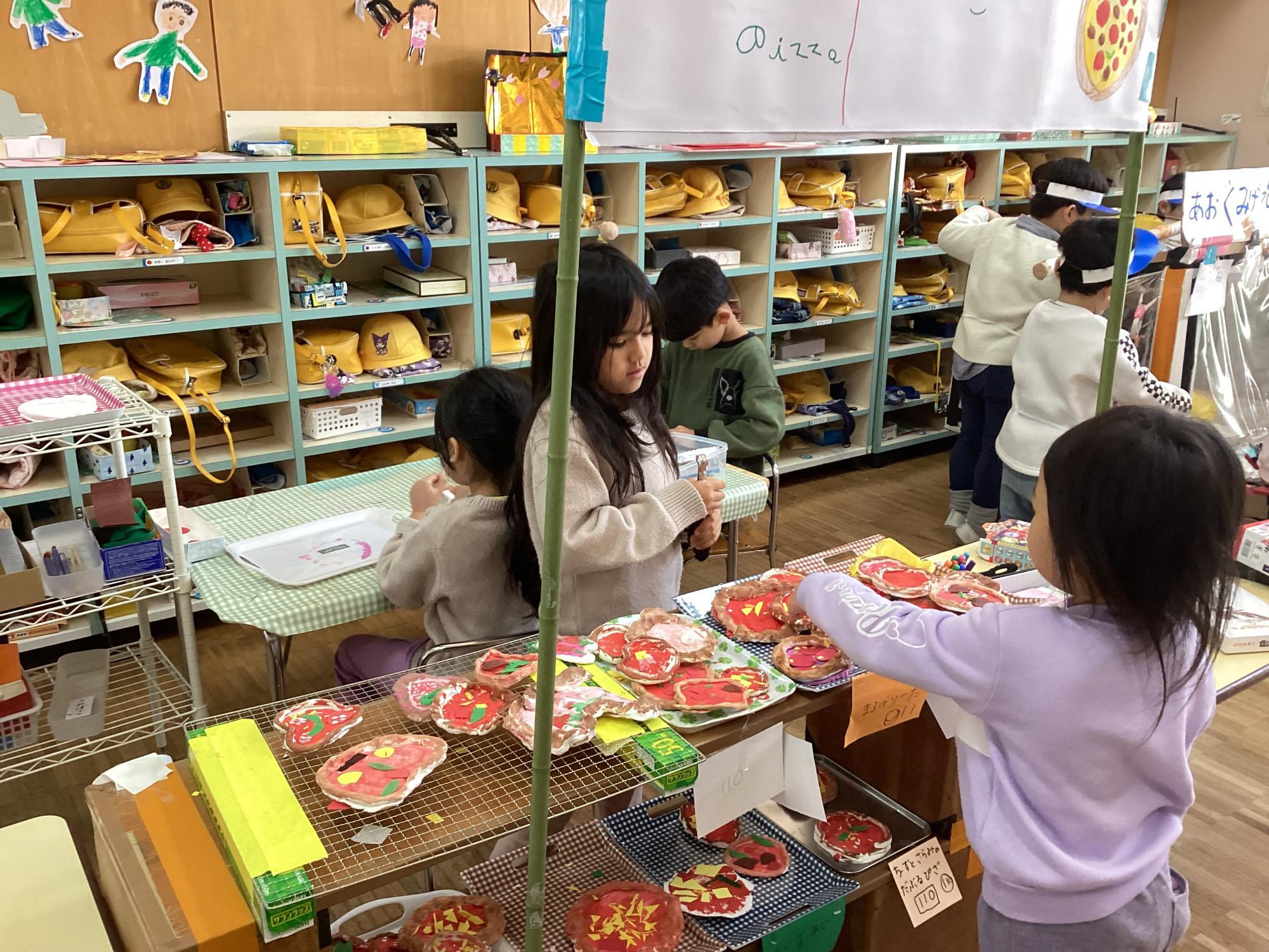 いろいろなピザができました。「いらっしゃいませ!どれにしますか?」と小さい子に優しく声をかけ注文を聞いています。