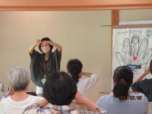 講師の先生と、指のツボを刺激すると体のどの部位が刺激されるか、体験していきました。