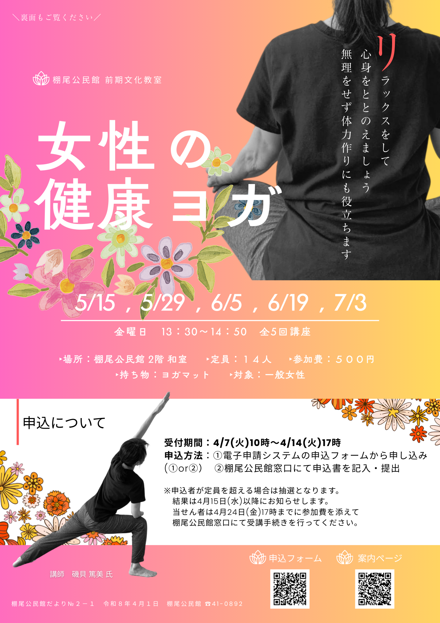 棚尾公民館 前期文化教室 女性の健康ヨガ