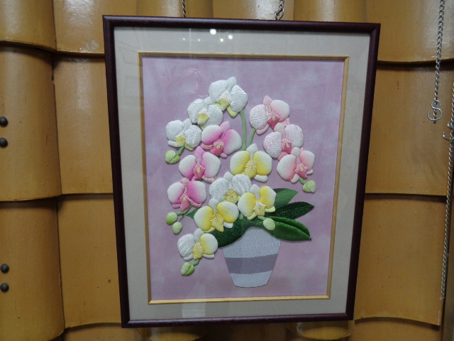 くるみ絵とは、ちりめん布などの布で台紙をくるんで作る立体感のある絵です。