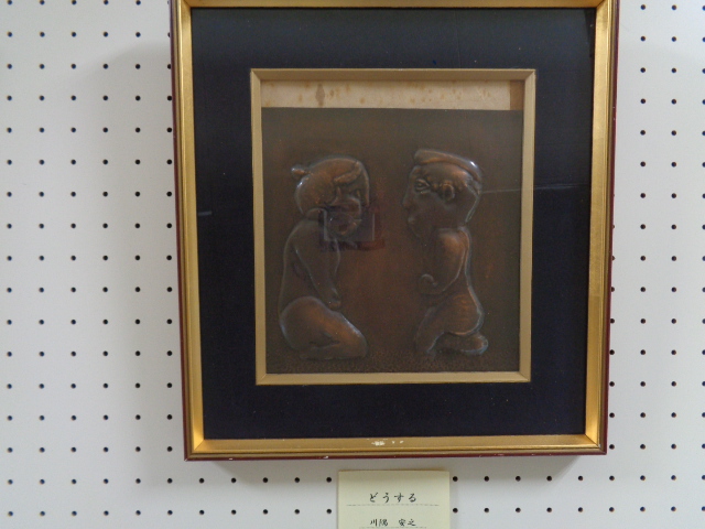 渋い色合いが魅力の作者渾身の作品である銅板レリーフを、是非、新川公民館にお越しいただきご覧ください。