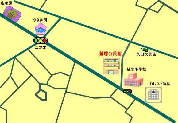 みどりコース・あおコースをご利用いただき、鷲塚公民館でご降車ください
